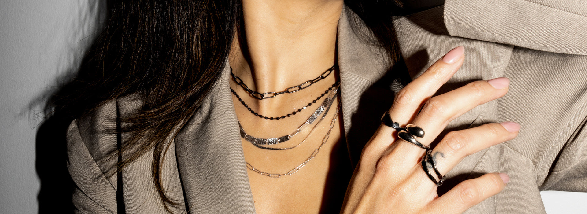 Frost hálsfesti hringlaga hlekkir - rhodium