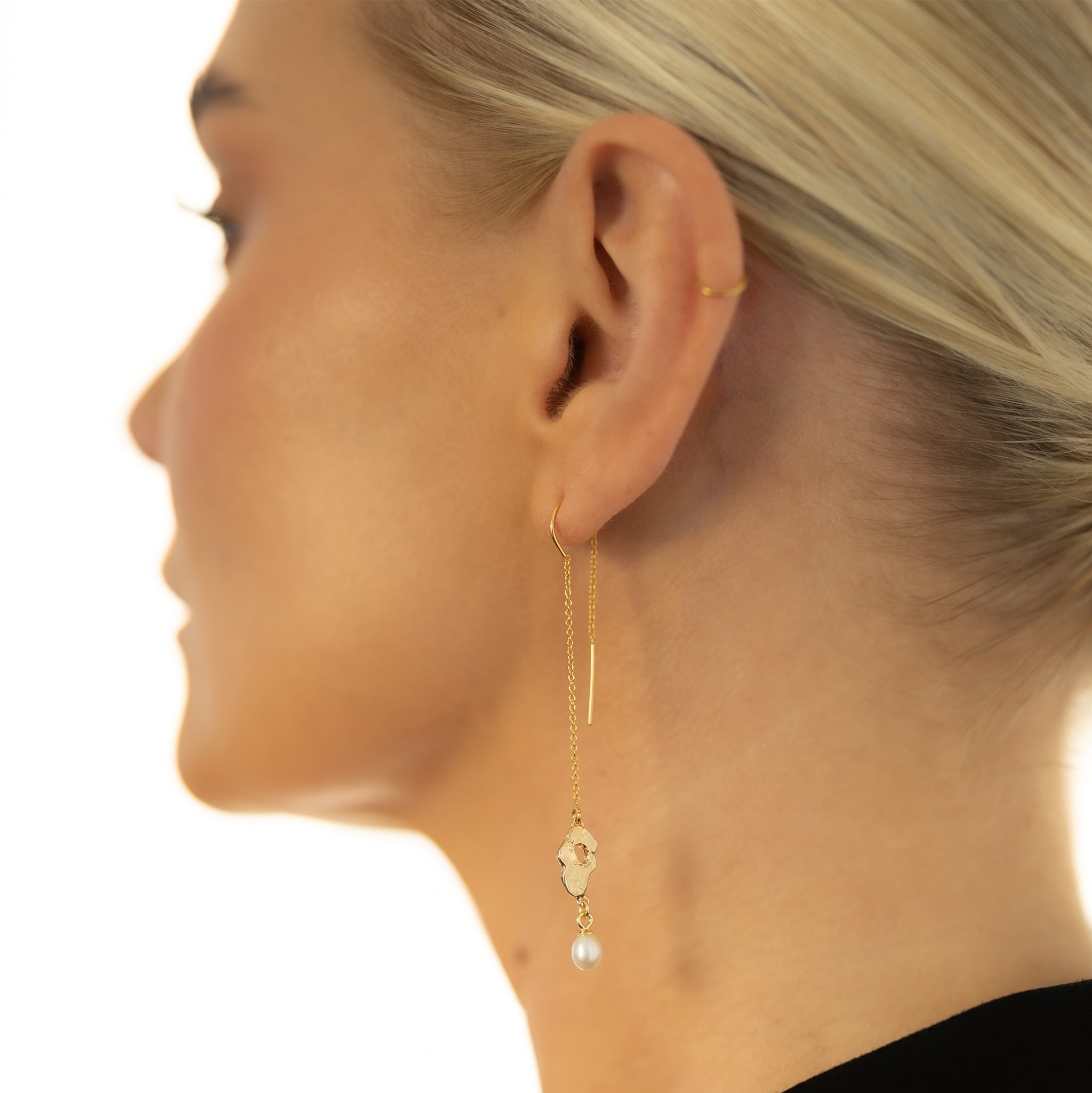 Örk eyrnalokkar - threaders litlir með perlum - gylltir