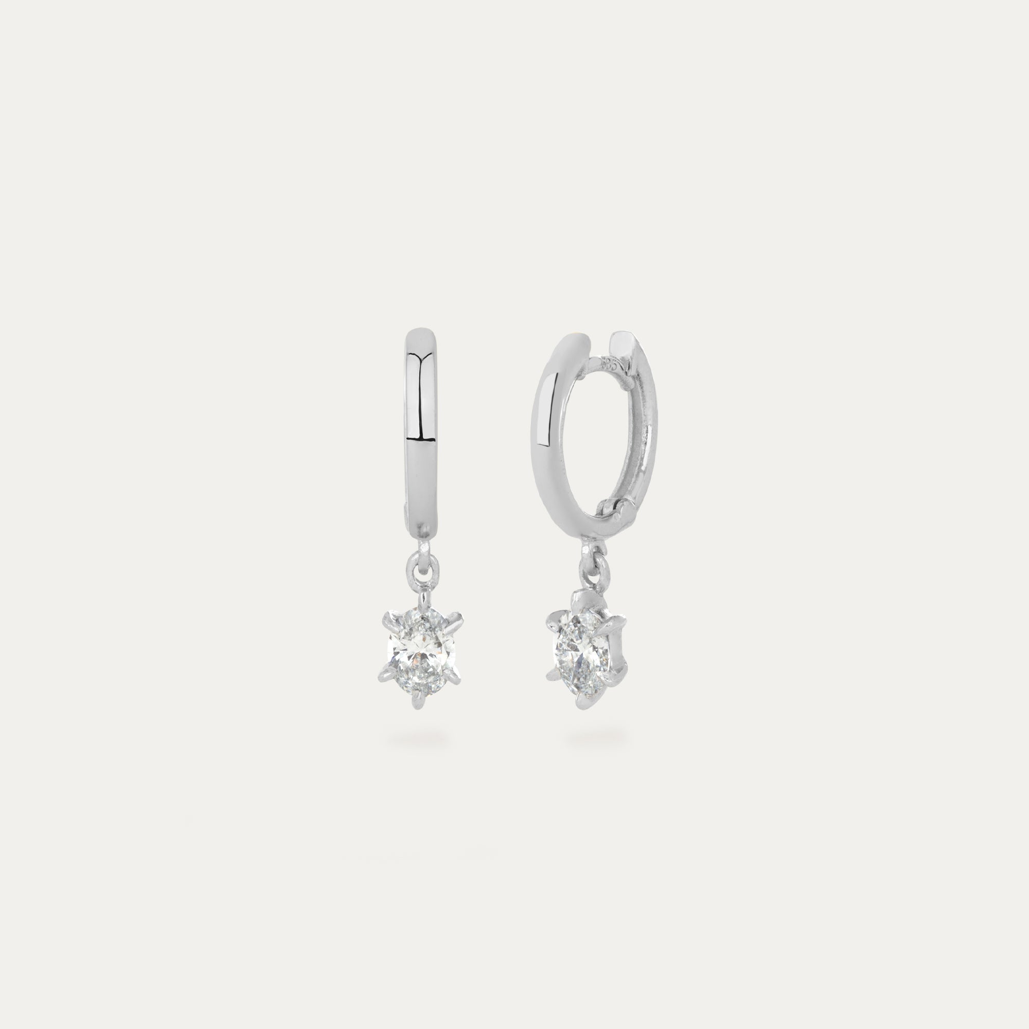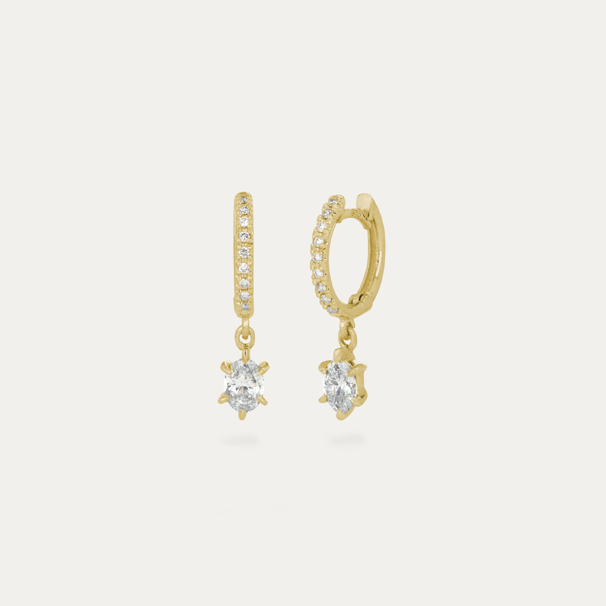 Hoops demantslokkarnir eru með Oval laga demanti hangandi úr lokkunum.
