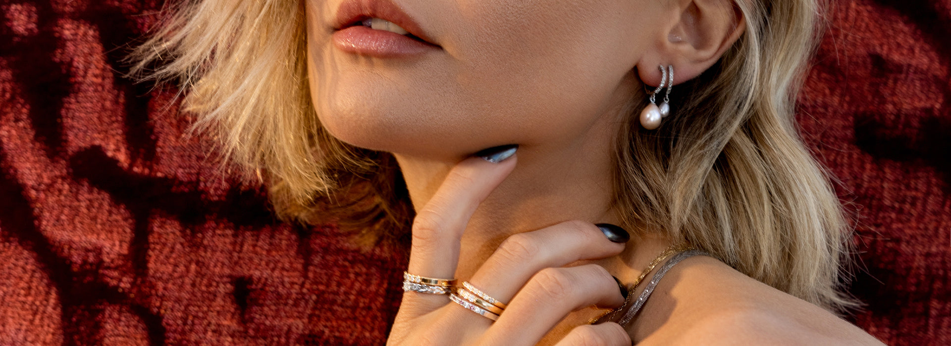 14kt gull & 14kt hvítagull skartgripir með demöntum, eðalsteinum & perlum.