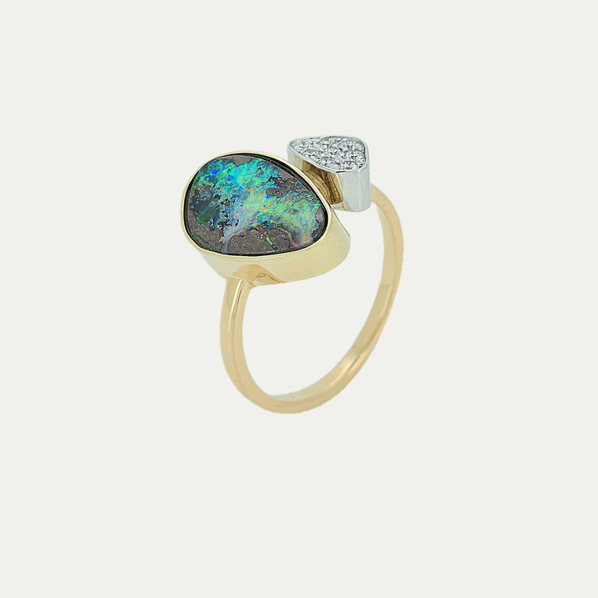 PS // hringur með Áströlskum Boulder Opal & demöntum - 14kt gull & hvítagull
