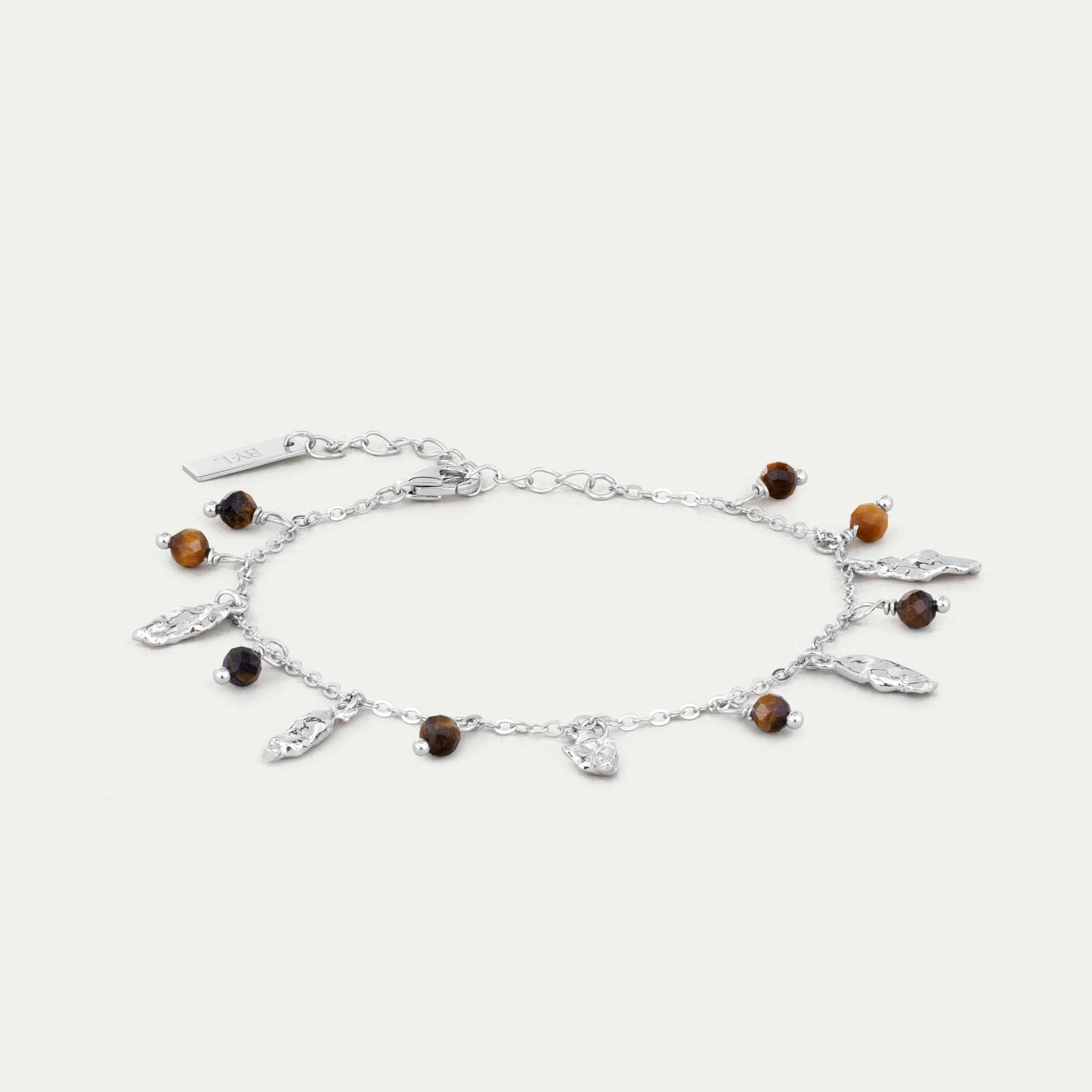 Örkörk armband m/ 5x arkir & 8x Tígrisaugu - rhodium
