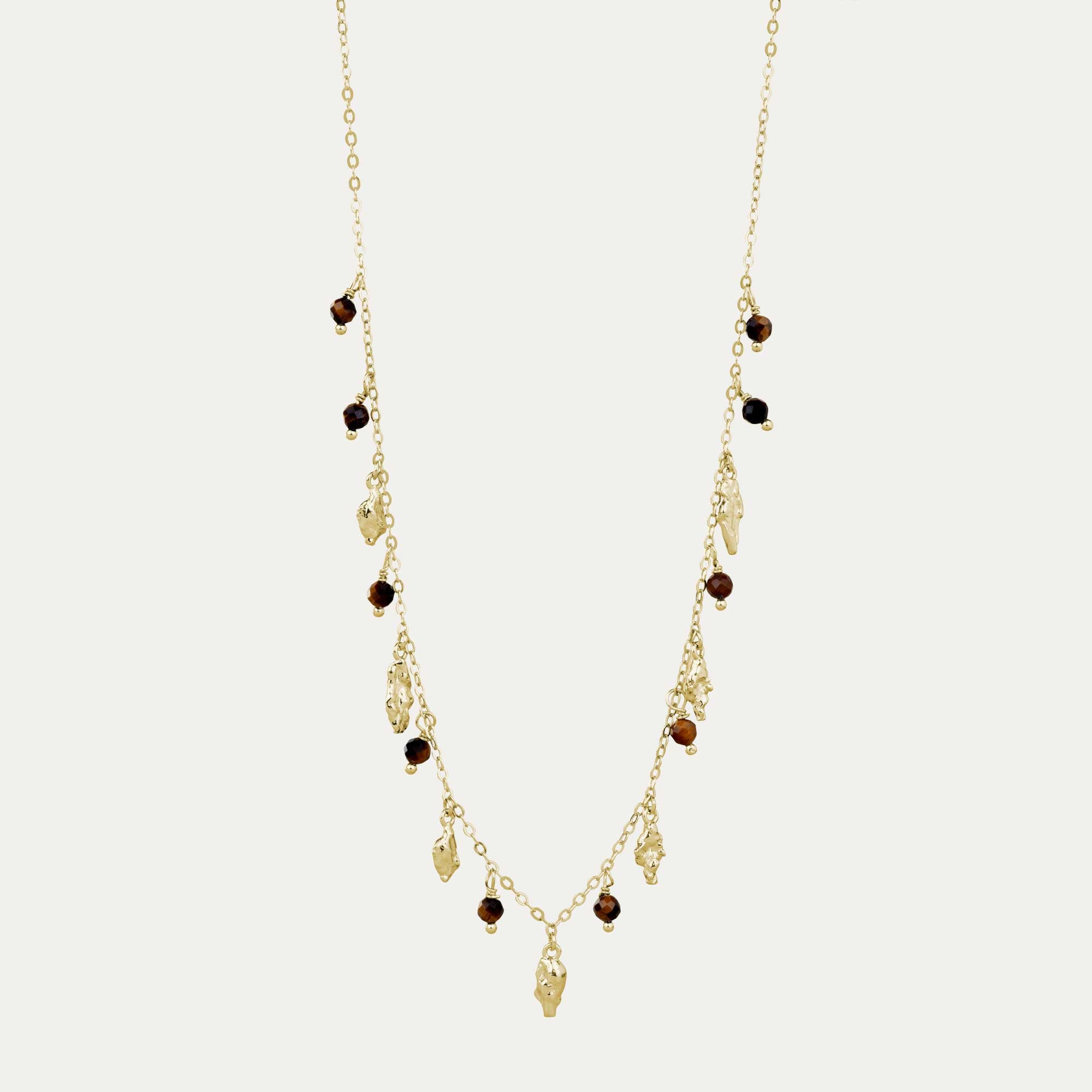 Örkörk hálsfesti m/ 7x arkir & 10x Tígrisaugu - gyllt