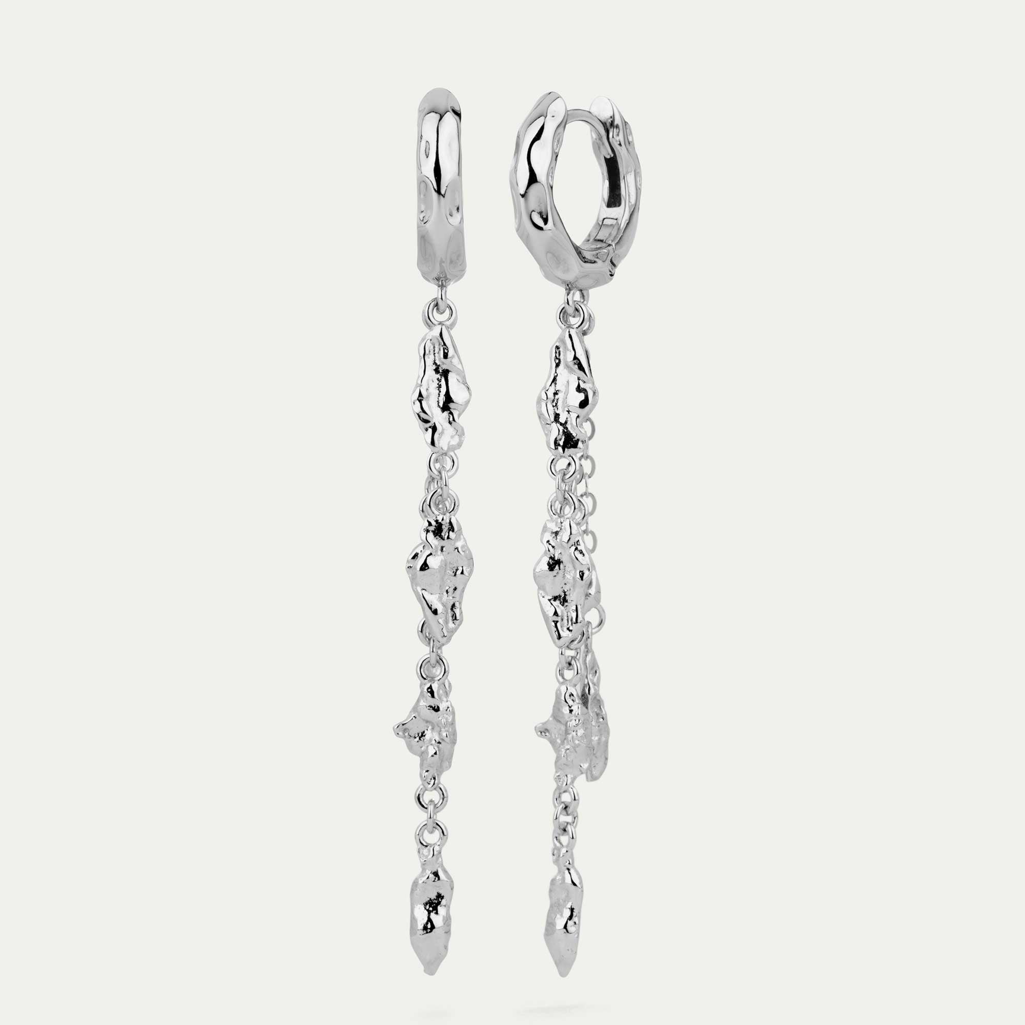 Örkörk eyrnalokkar 15mm hoops m/ 4x örkum í keðju - rhodium