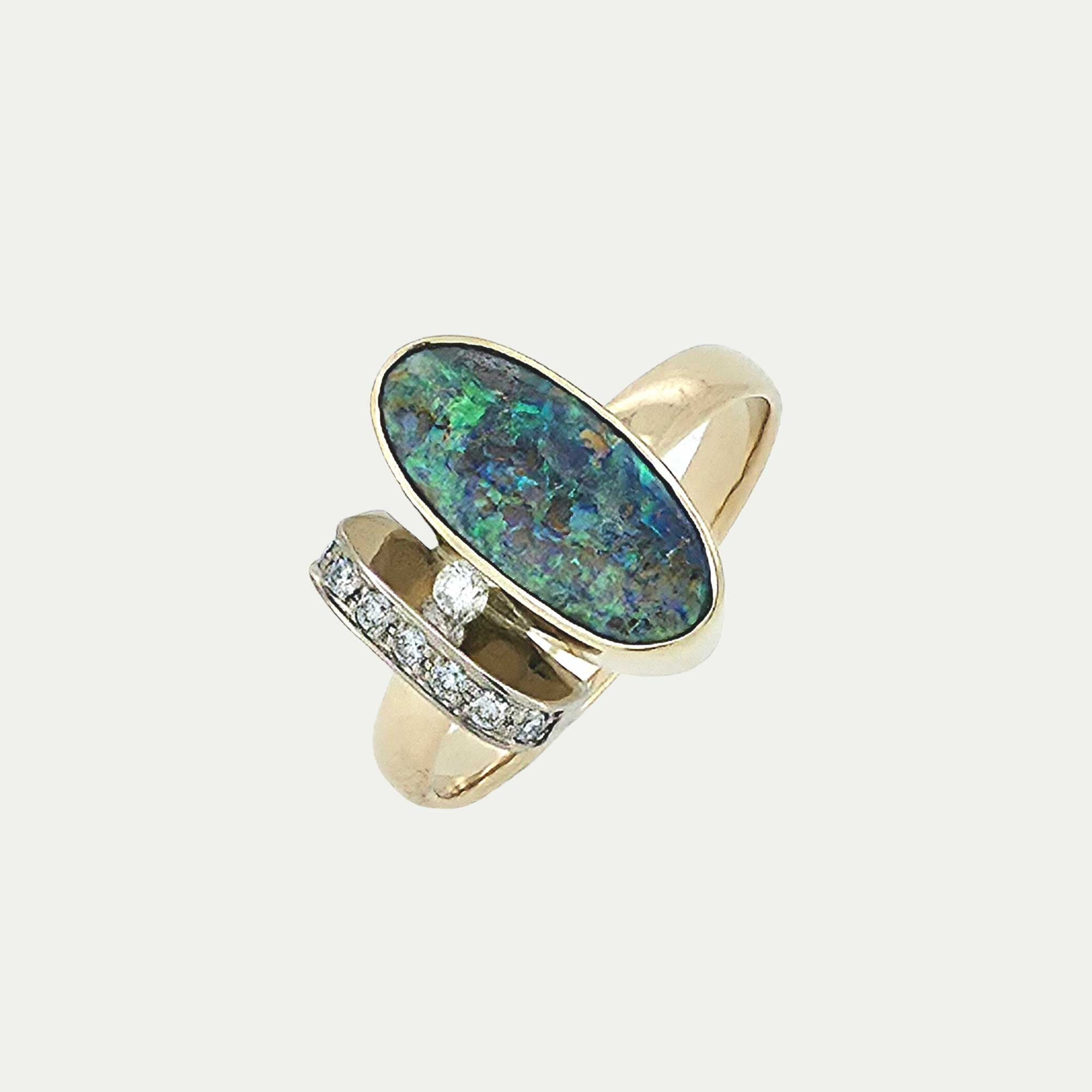 PS // hringur með áströlskum Boulder Opal & demöntum / 14kt gull