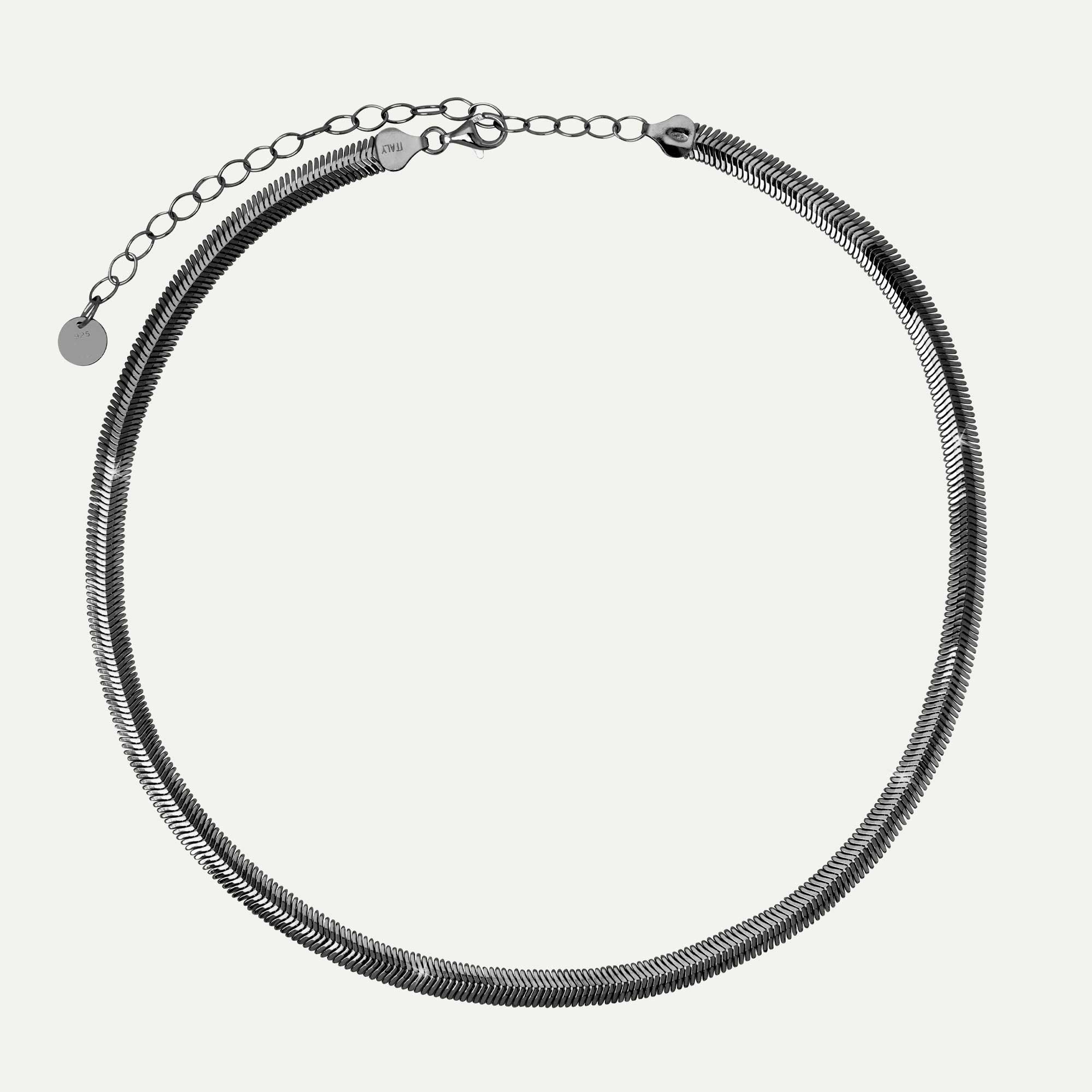 This chain is made of 925 sterling silver with a black rhodium coating.