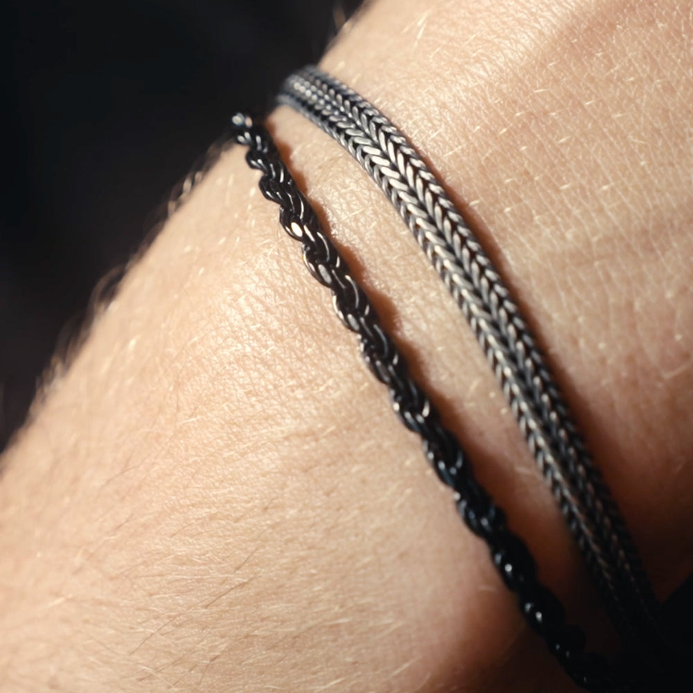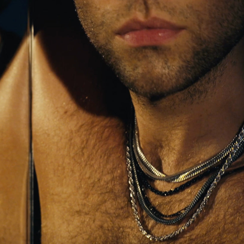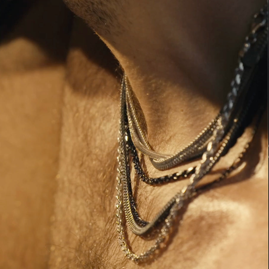 Necklaces and bracelets made of 14kt gold and silver for men.