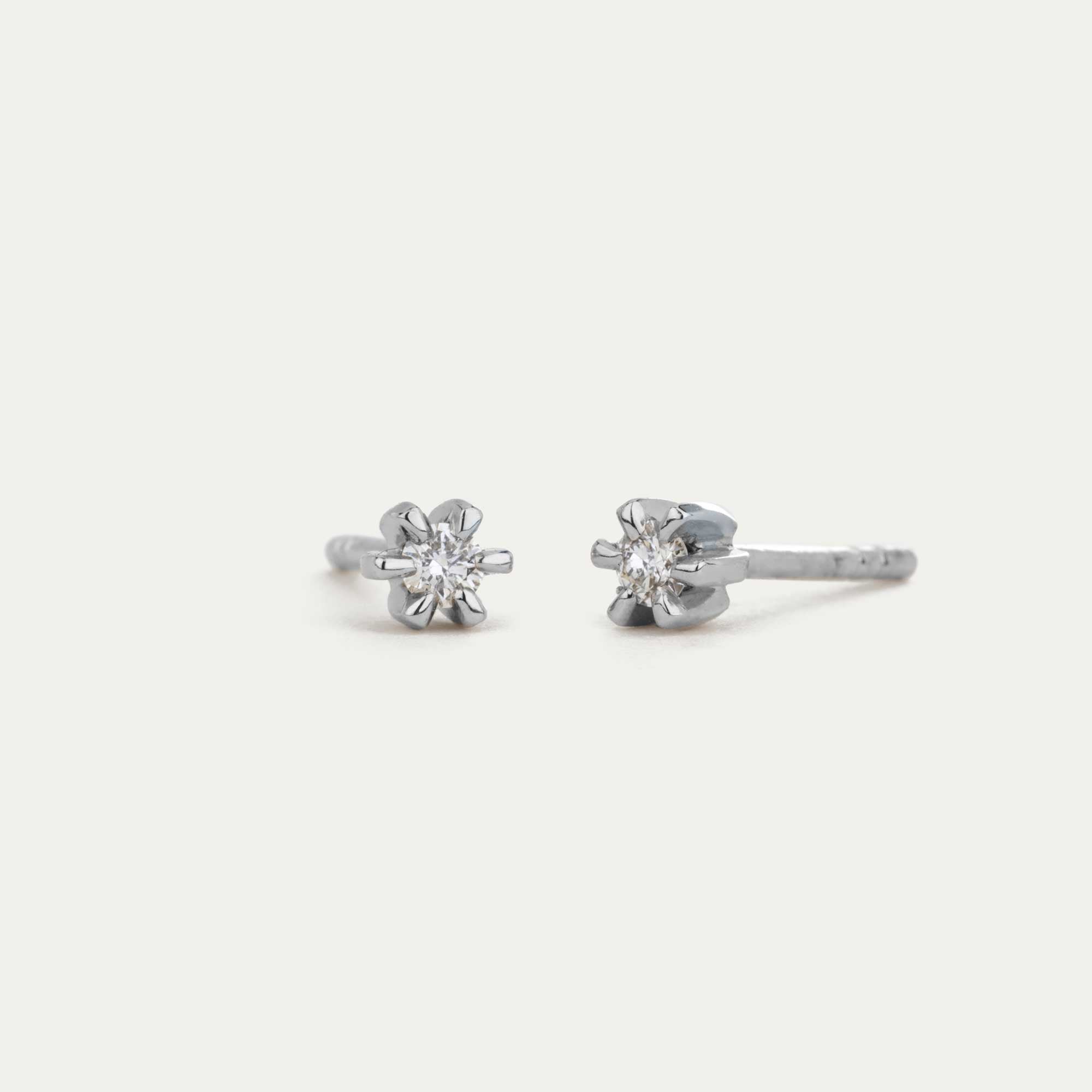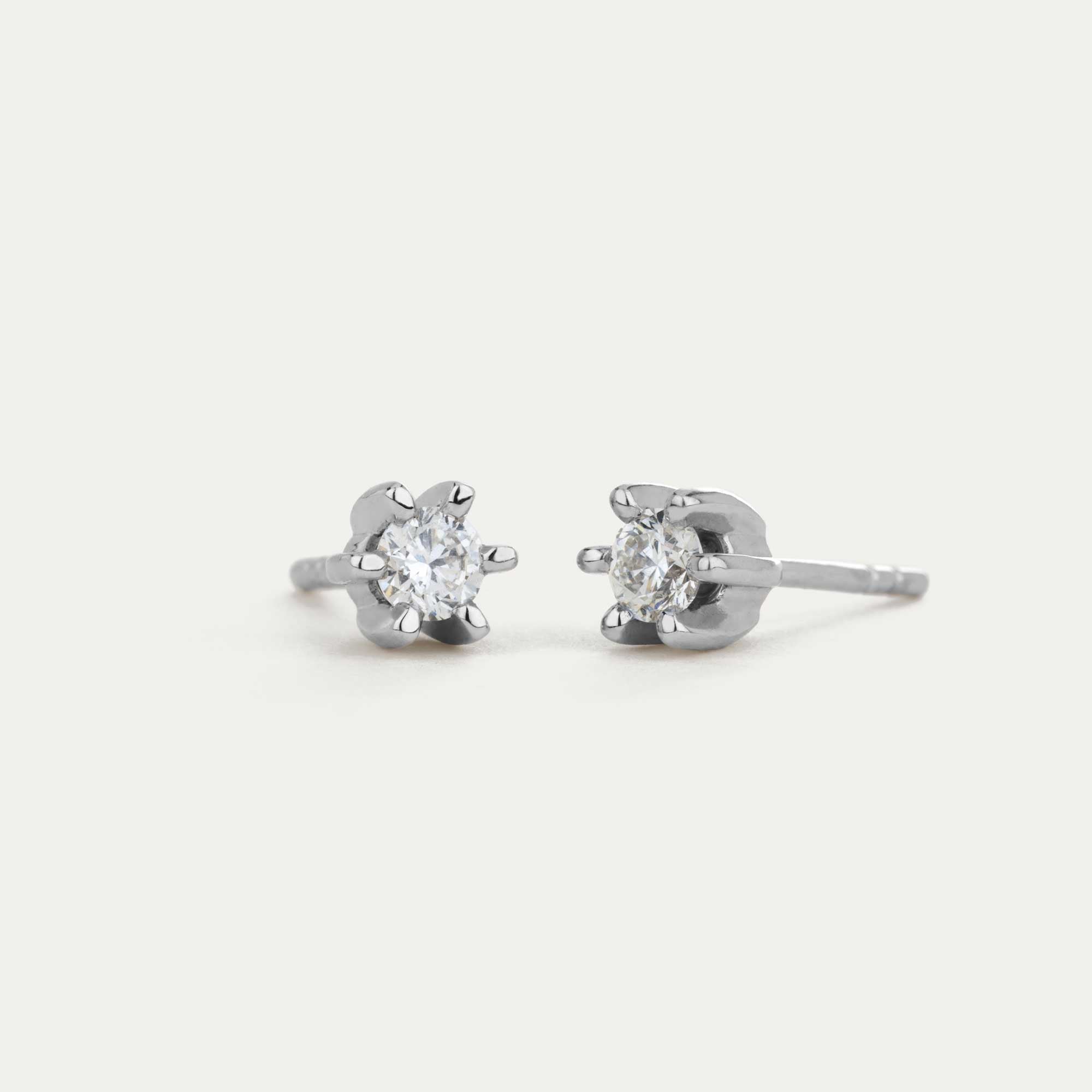 Stud earrings with diamonds - 14kt white gold
