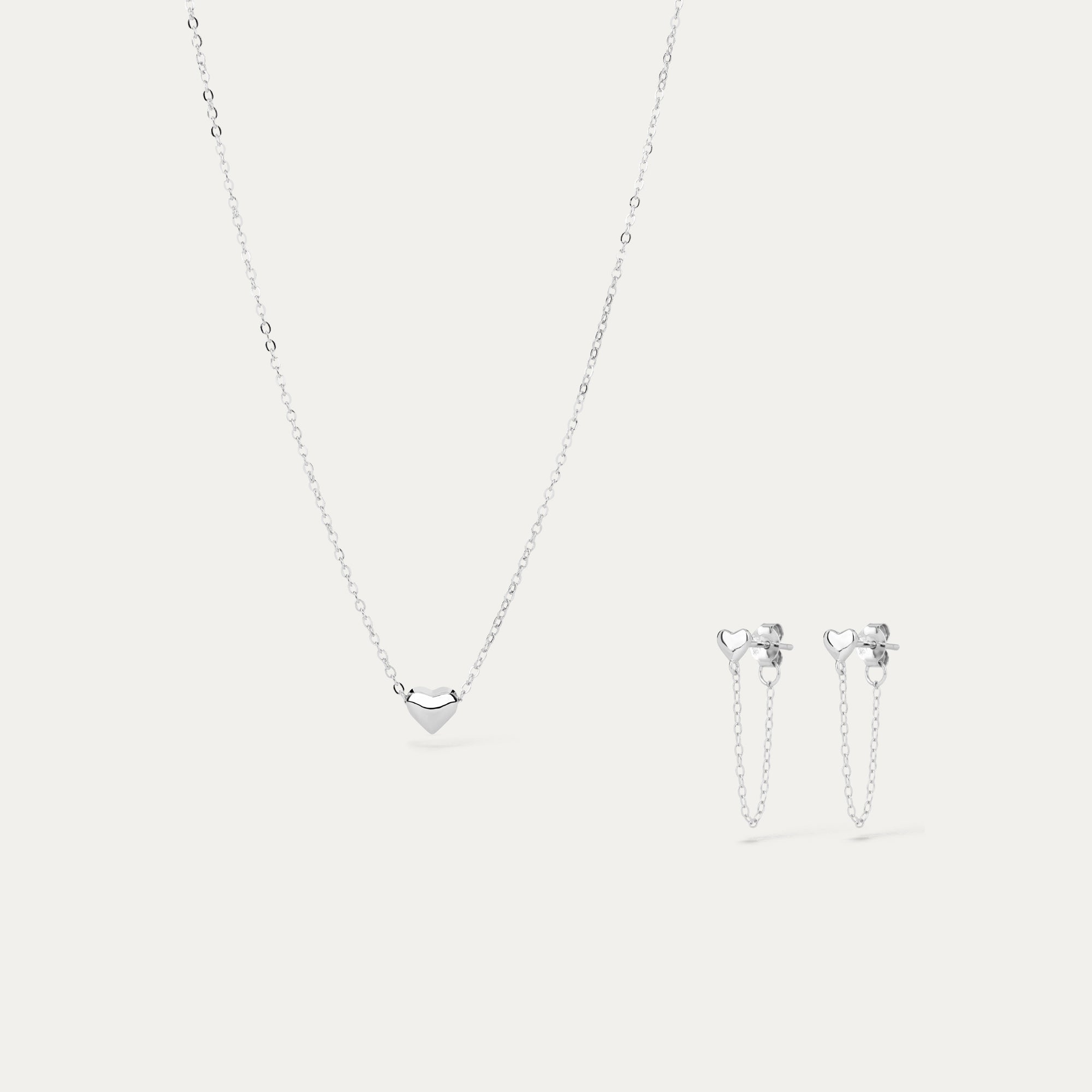A very delicate gift set with small hearts that contains chain earrings and a delicate necklace with a small heart from the Ásta collection.