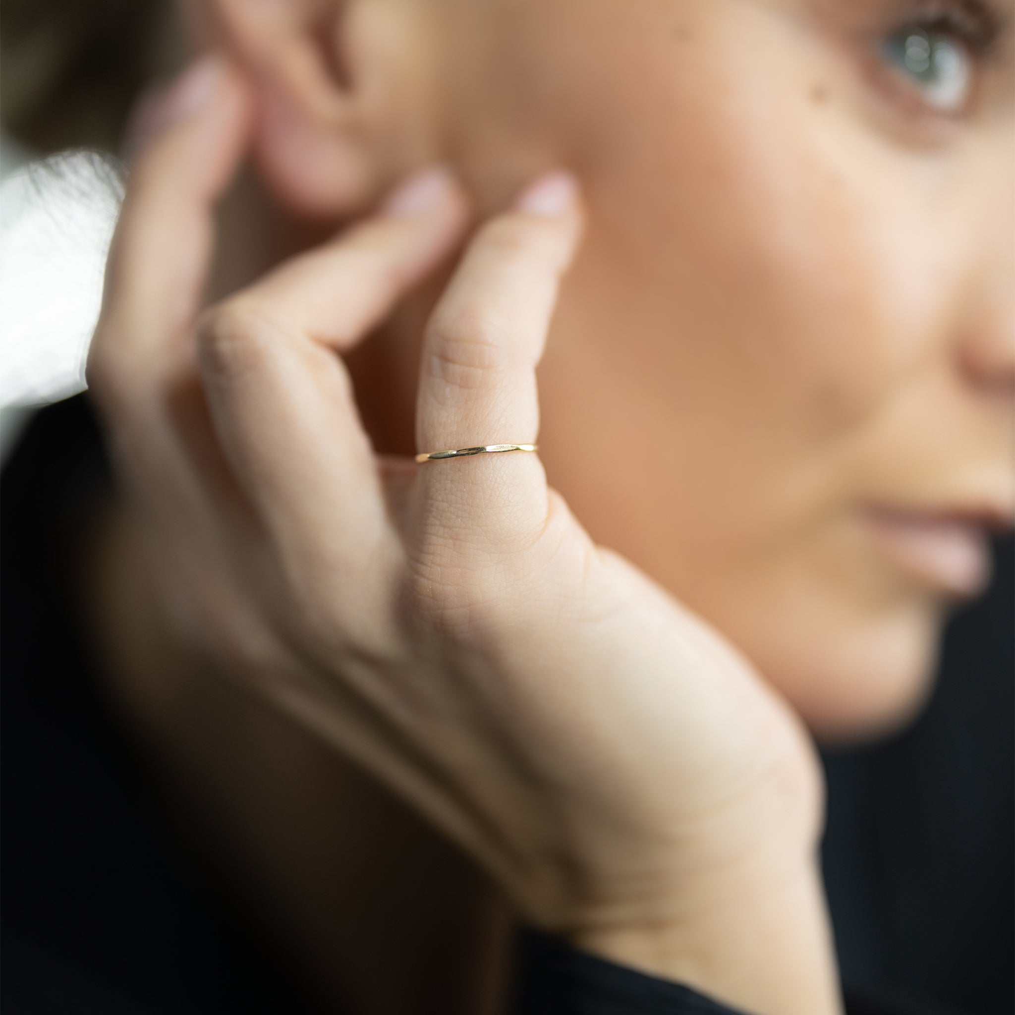 Við notum 14kt gull vegna þess að það er harðara en 18kt gull og hentar því einkar vel fyrir skartgripi sem notaðir eru dags daglega.