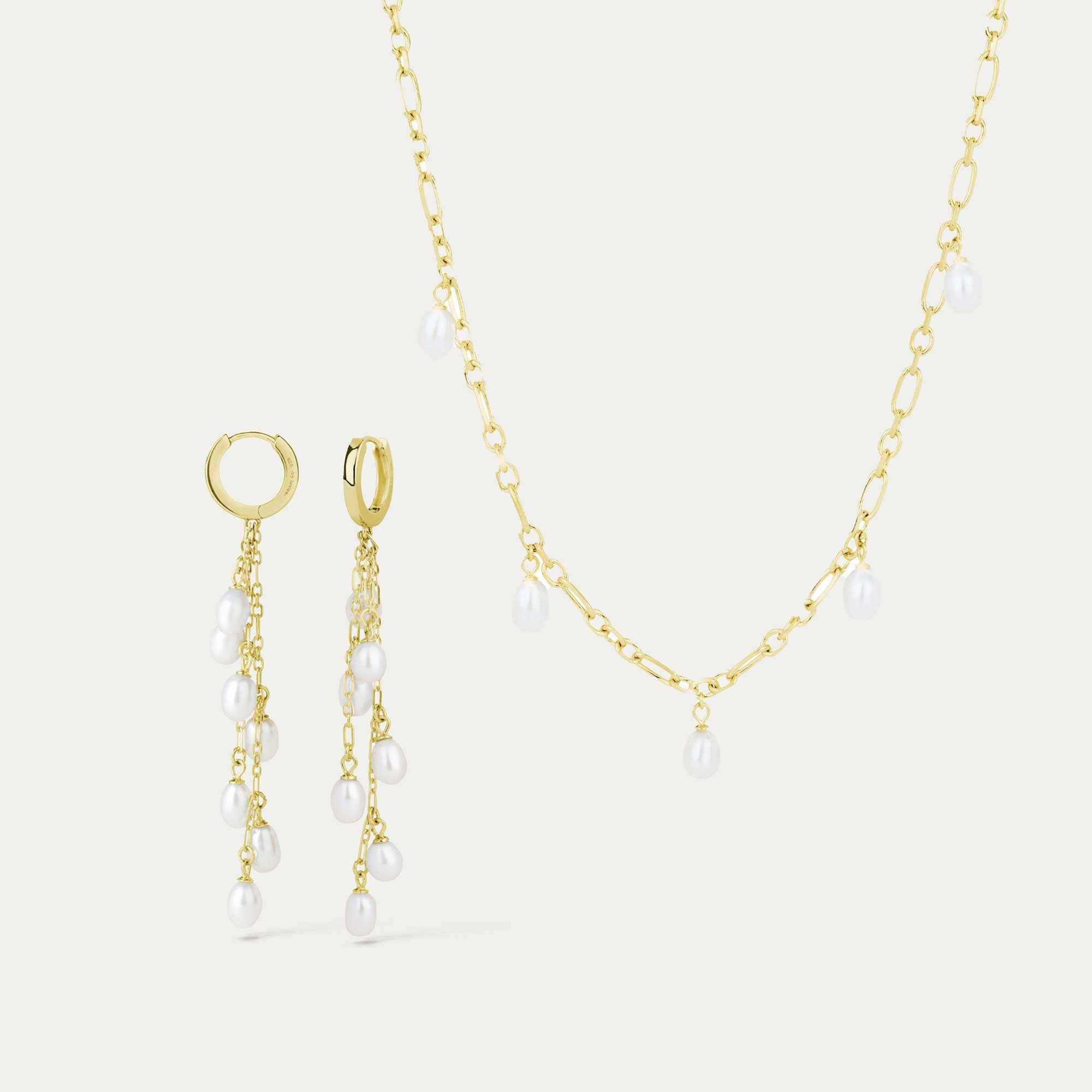 Haf earrings + coarse chain with pearls - golden