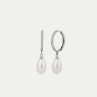 Haf eyrnalokkar stórir m/ stórri perlu og demöntum - 14kt hvítagull