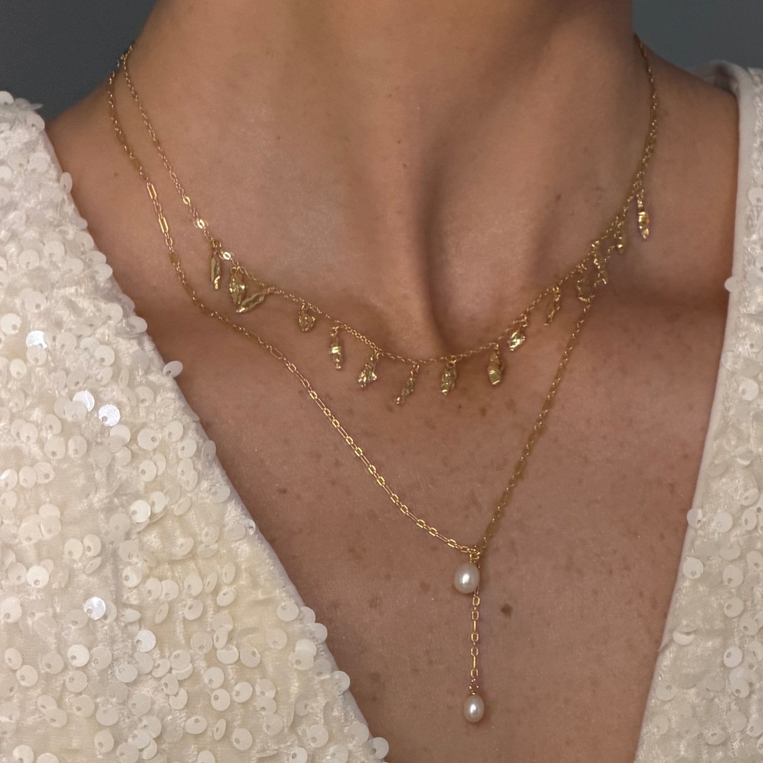 Fínlegt hálsmen í Haf línunni með ferskvatnsperlum. Demantsskurður er á keðjunni sem gefur henni fallegan glans.
