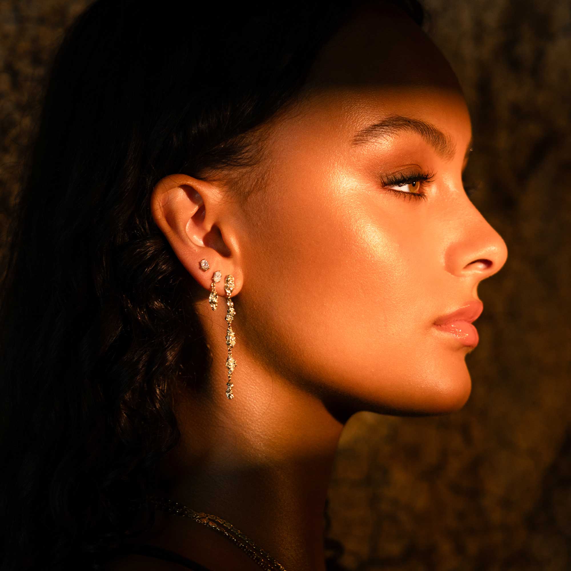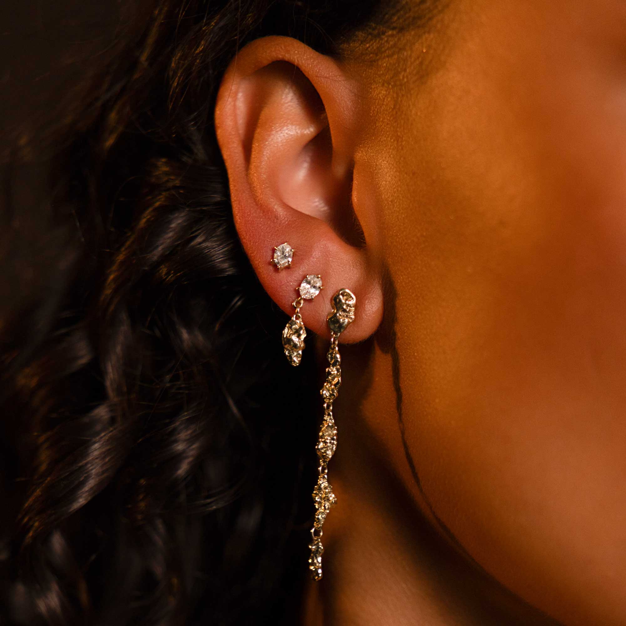 Eyrnalokkarnir eru með demanti upp við eyrað og eitt ský hangir niður.