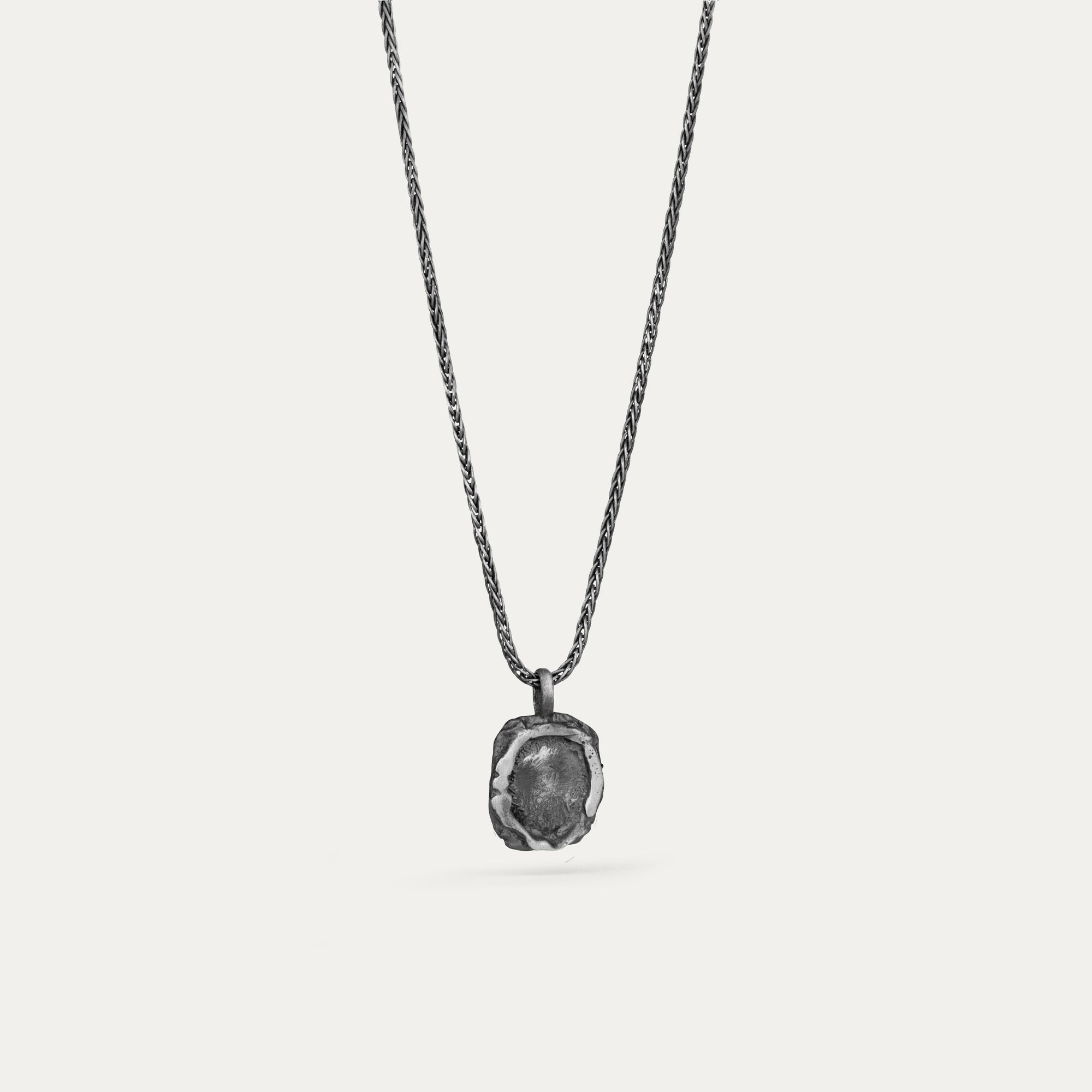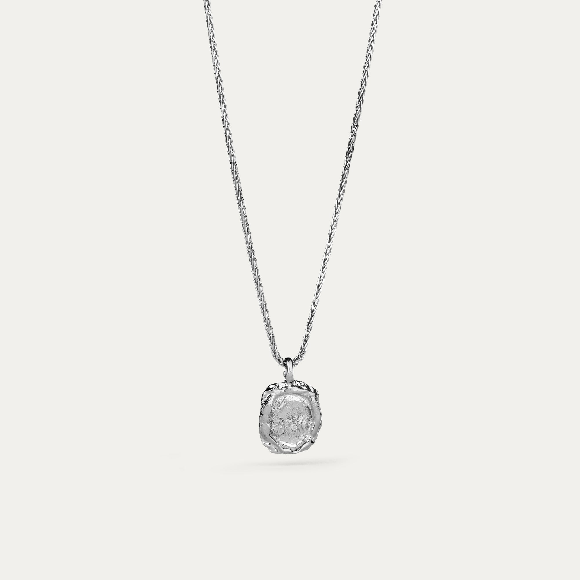 Þessi skartgripur er úr 925 sterling silfri. Fæst með rhodium húðun sem er silfurlitað, en rhodium ver silfrið gegn oxun, þ.e. að það fellur síður á það. Einnig með burstaðri áferð eða oxideringu sem gefur matta áferð.